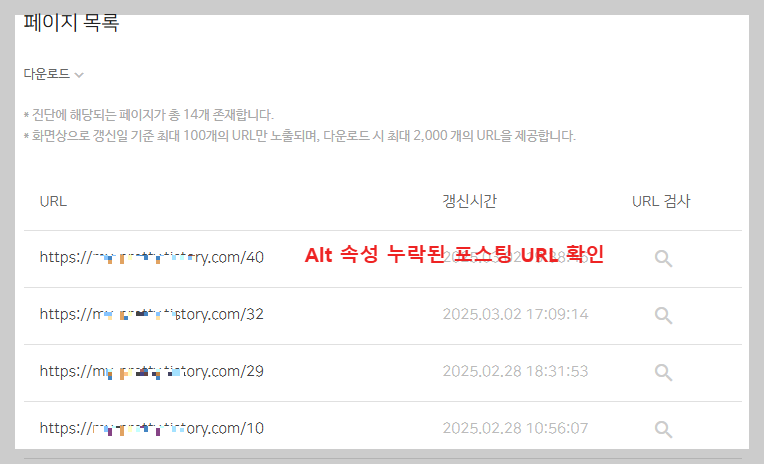 Alt 속성 누락된 URL을 클릭하고 해당 페이지로 이동합니다.