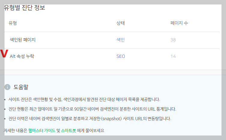 네이버 서치어드바이저 → 웹마스터도구 → 리포트 → 사이트진단을 클릭합니다.